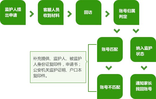 在監(jiān)護人發(fā)現(xiàn)被監(jiān)護人有沉溺龍淵網(wǎng)絡游戲的情況下,監(jiān)護人可向成都龍淵網(wǎng)絡科技有限公司申請發(fā)起未成年人家長監(jiān)護機制。 監(jiān)護人需親自通過郵寄方式 向我司提供有效材料,向成都龍淵網(wǎng)絡科技有限公司提出未成年人賬戶監(jiān)控的申請。在收到郵件后, 我司即開始啟動監(jiān)護機制審核流程,首先進入疑似賬號身份確認期。